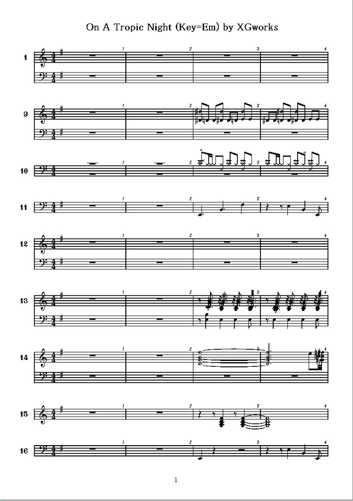 QuickScore Elite Level II MIDI ファイルを読込んで 楽譜表示・編集できます DEMO 版では楽譜情報を ファイルへ保存できません 保存できるのは MIDI フォーマット 0 だけです 印刷は起動する度に1回だけ できます 再起動すればさらに1回できます 印刷イメージです クリックで拡大表示します ![]() 1段に4小節レイアウトは 無理かも |